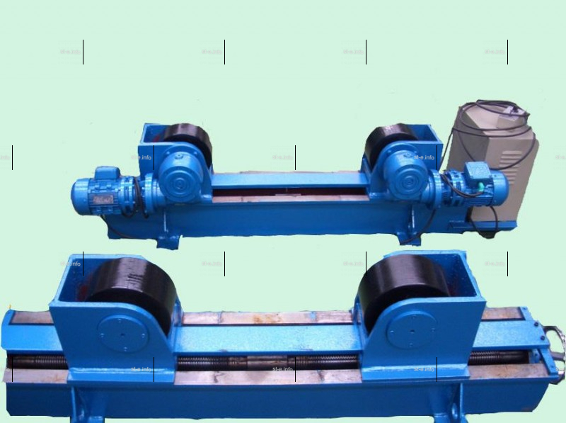 Коплект сварочных вращателей, включающий в себя одну приводную секцию и одну холостую, с помощью ступенчатого регулирования расстояния между центрами подходит для разных диаметров заготовки и удовлетворяет потребности клиента.