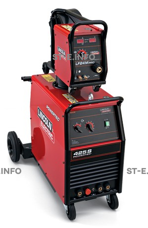POWERTEC® 425S с питанием от 3х фазной сети - источник питания постоянного тока с выходным током 420А при 35% ПВ. В комплекте с механизмом подачи LF-24M PRO POWERTEC® 425S - идеальное решение для полуавтоматической, промышленной MIG/MAG сварки сталей, нержавеющих сталей и алюминия, а также для сварки порошковой проволокой в среде защитного газа. Источник оснащен встроенной тележкой на колесах, имеет ручки для перемещения, поставляется в комплекте с 5-ти метровым сетевым кабелем и 3-х метровым кабелем массы. Данная установка поставляется в двух версиях: с воздушным и водяным охлаждением.